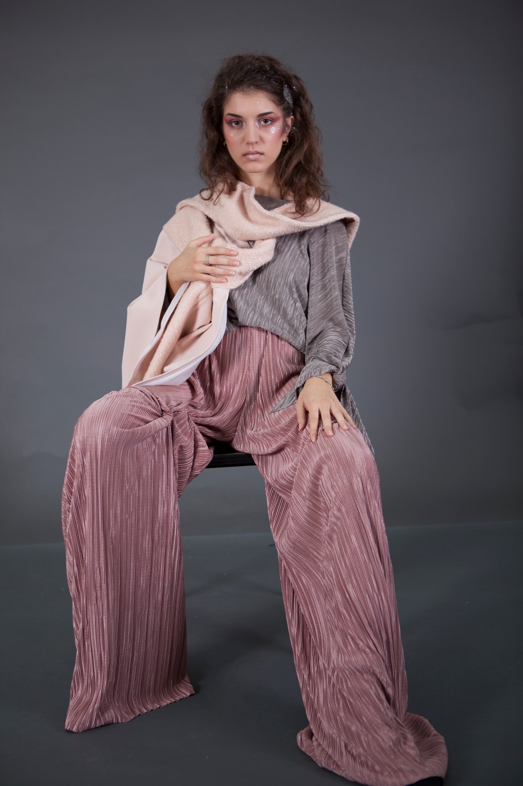 Bună! Numele meu este Grindei Naomi, am 23 ani și sunt masterandă în cadrul Facultății de Arte Decorative și Design din București, secția Strategii de Modă și Costum. Nu pot spune că am ales designul, el m-a ales pe mine! Încă de mic copil, mama fiind croitoreasă, am trăit printre materiale și ateliere de croitorie. Am început încă de la vârsta de 9 ani să desenez, croiesc haine pentru păpuși, mai târziu învățând să cos de mână și la mașinile mamei. Participam la toate concursurile de arte organizate în școala primară, gimnazială, respectiv în liceu, unde deja îmi făceam singură diverse piese vestimentare. Îmi plăcea să fiu diferită.