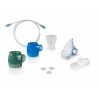 Omron DuoBaby are două kituri de nebulizare, kit-ul verde asigură un flux de aerosoli cu particule de aproximativ 9µm, poate fi utilizat pentru tratarea unor răceli comune, rinită alergică sau faringite, iar kit-ul albastru oferă aerosoli cu particule de aproximativ 4 µm, care vor ajunge în principal în plămâni, astfel încât poate fi utilizat pentru tratarea afecțiunilor căilor respiratorii inferioare, cum ar fi astmul, otita medie sau laringita.