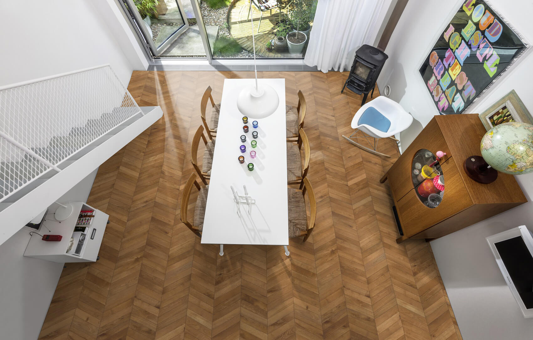 Perspectiva data de modelul Chevron (de)formeaza perceptia despre spatiu, lasand privirea sa odihneasca asupra detaliilor. Modelul Chevron te ajuta, dar in acelasi timp te provoaca sa gasesti acele piese de design interior care sa rupa multitudinea de linii drepte si oblice. Din orice unghi ai privi acest model de parchet Chevron vei observa autenticitatea.