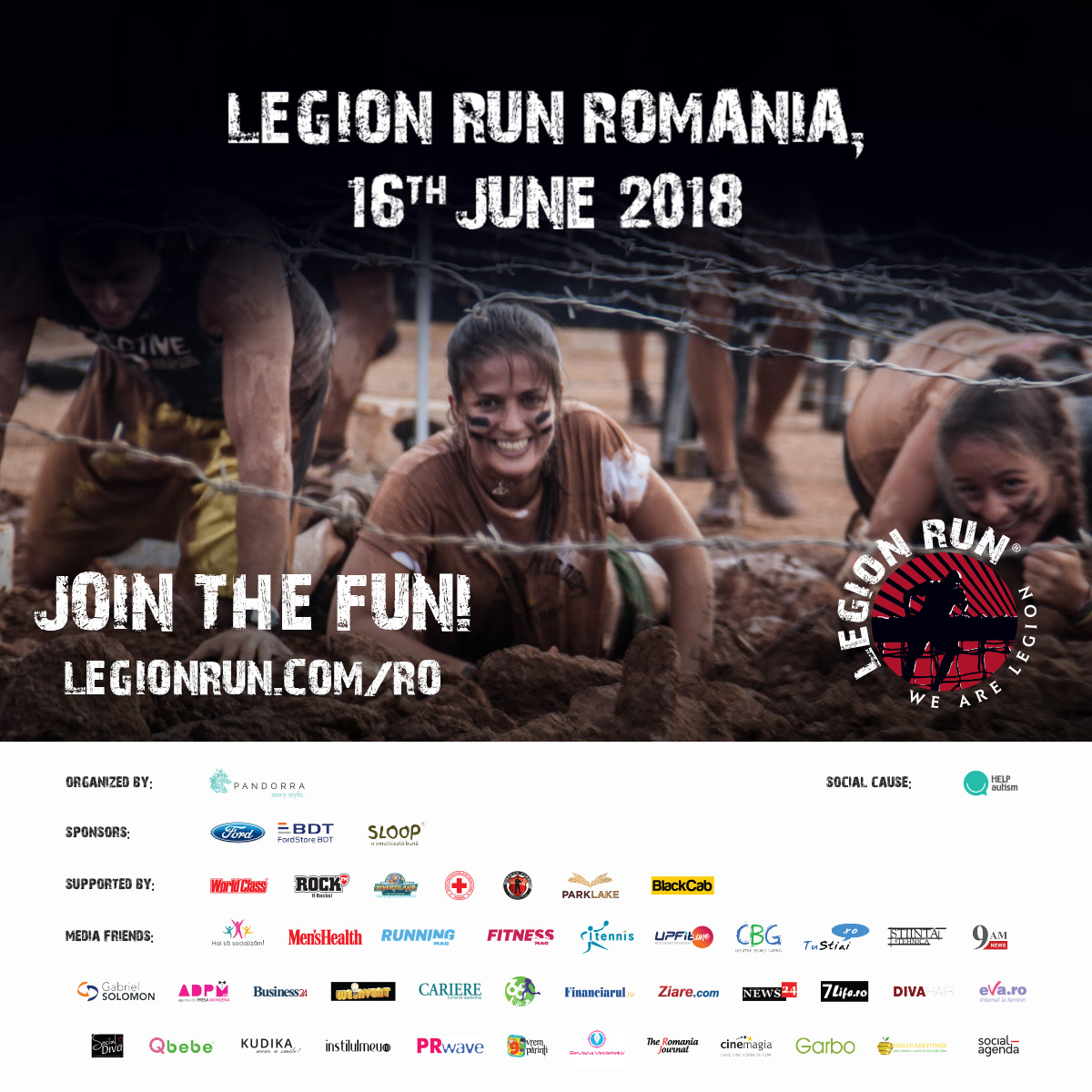 Tot ce trebuie să faceți pentru a beneficia de toate acestea este să vă înscrieți, individual sau în echipă, alături de prieteni sau colegi, direct pe site-ul evenimentului. Tot pe website Legion Run veți putea găsi o serie de informații utile, detalii despre obstacole și experiența participării la eveniment, cât și detalii despre cauza socială în parteneriat cu Asociația Help Autism.
