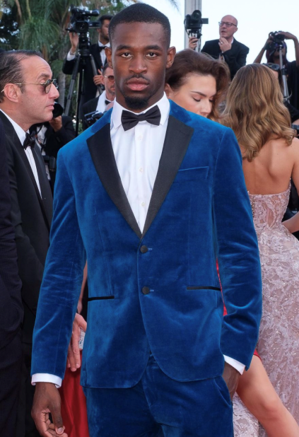 Jonathan Akamba a purtat un smoking albastru din catifea din arhivele TOMMY HILFIGER.