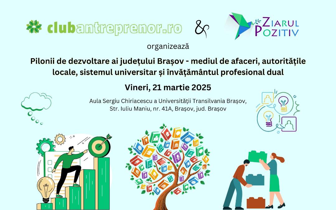 Împreună, putem construi un Brașov mai puternic, mai inovator și mai conectat la nevoile viitorului! Această conferință organizată de Club Antreprenor și Ziarul Pozitiv promite să fie un catalizator pentru dezvoltarea afacerilor și creșterea economică în regiune, oferind managerilor și antreprenorilor locali instrumentele necesare pentru a naviga cu succes în peisajul de afaceri în continuă schimbare.