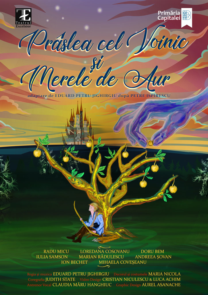 Teatrul Excelsior prezintă joi, 1 noiembrie 2018, ora 19:00, premiera oficială a spectacolului „Prâslea cel Voinic și merele de aur”, adaptare a basmului omonim scris de Petre Ispirescu, în regia lui Eduard Petru Jighirgiu.