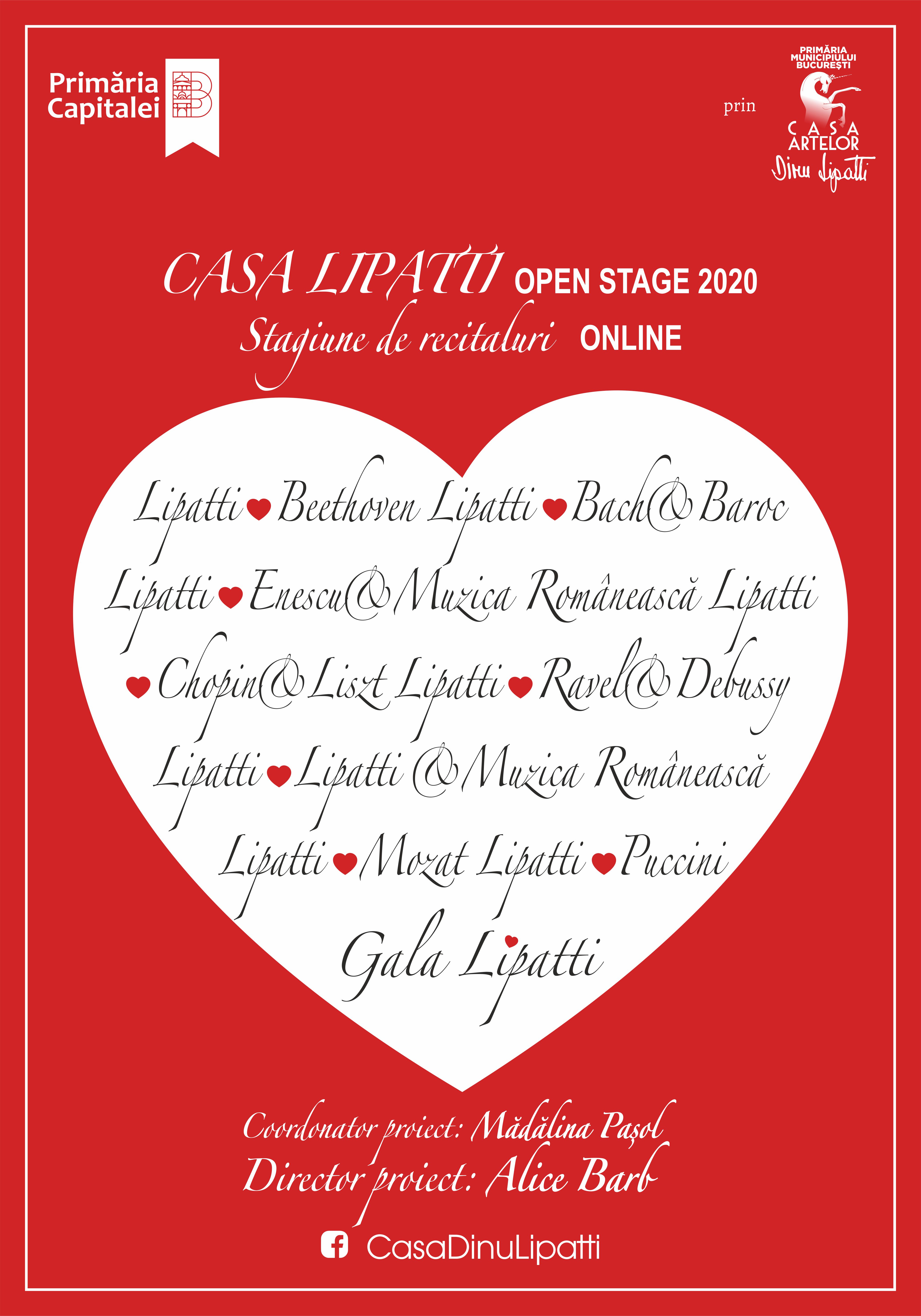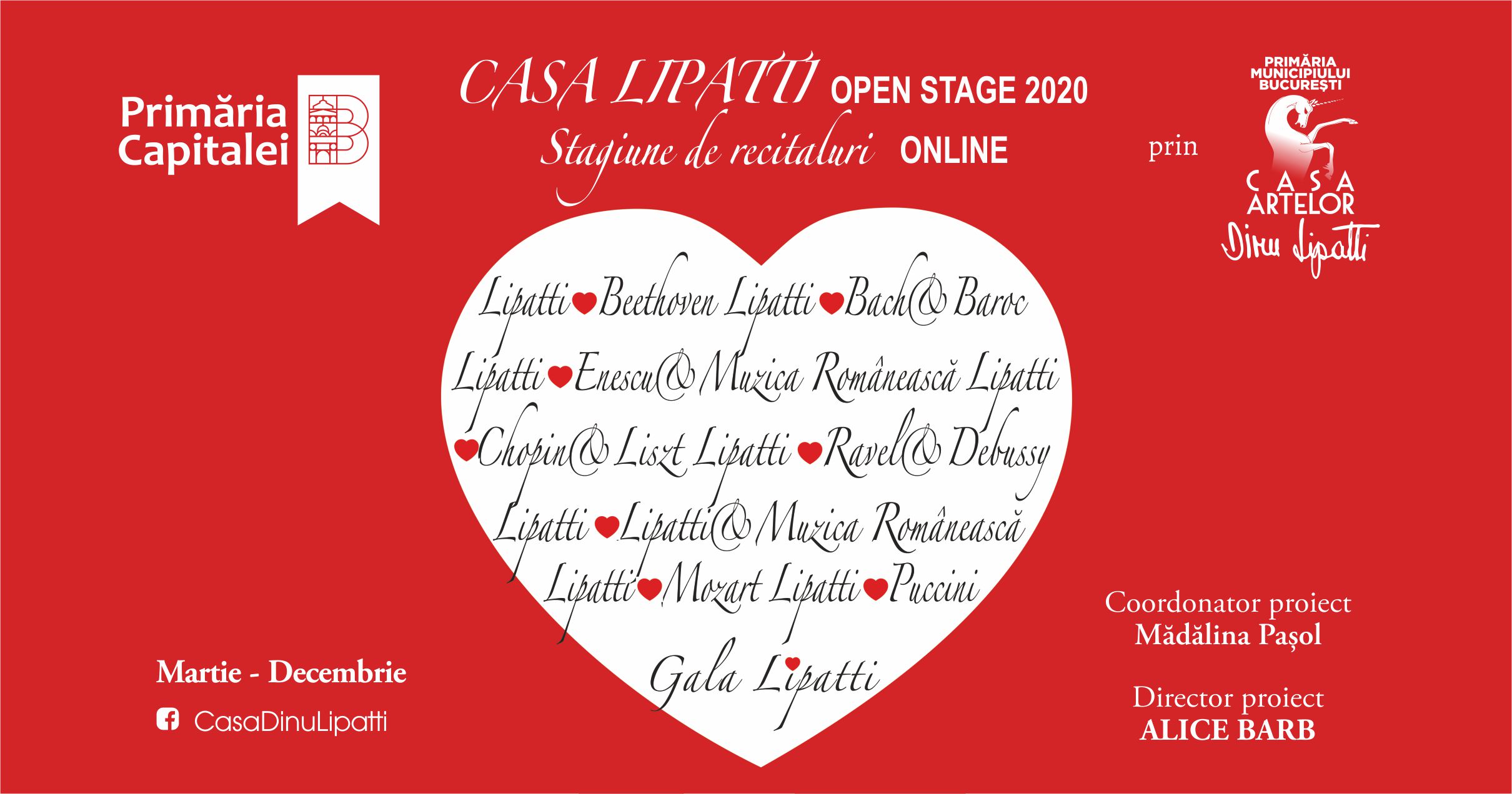 Programul cultural CASA LIPATTI Open Stage 2020 constă într-o stagiune de Recitaluri lunare, pe o temă dată, dedicată muzicienilor profesioniști de toate vârstele. Prin digitalizarea activităților și trecerea stagiunii CASA LIPATTI Open Stage 2020 în mediul Online, am creat o scenă accesibilă artiștilor români din întreaga țară și publicului din întreaga lume.