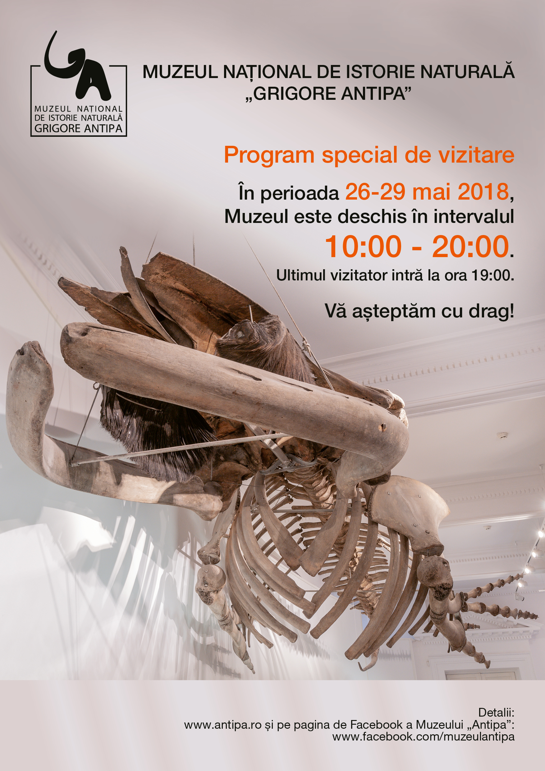 Programul special de vizitare al Muzeului Național de Istorie Naturală „Grigore Antipa” în perioada 26 – 29 mai 2018