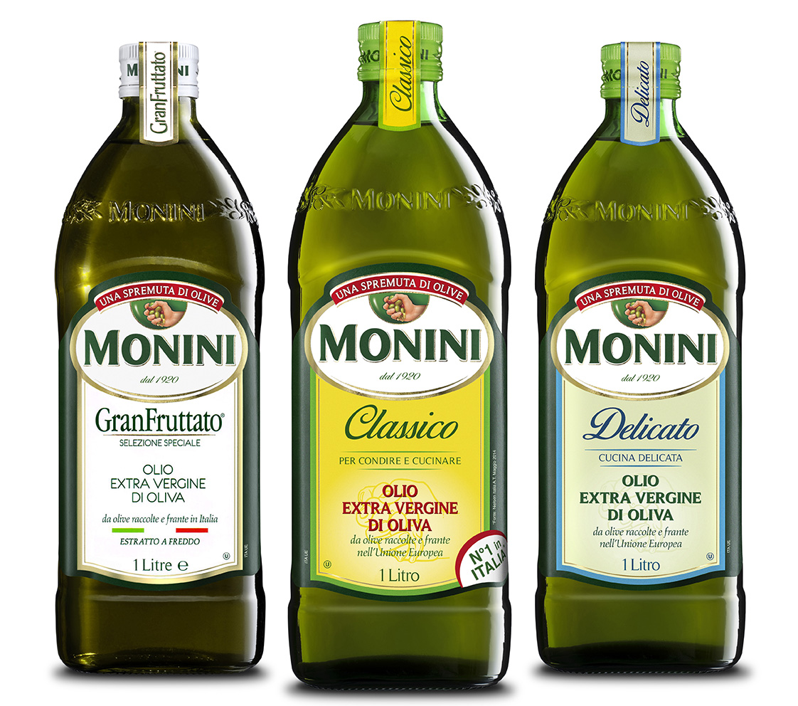Monini Delicato cu aroma sa fină și suavă este varianta alternativă recomandată de specialiștii în gastronomie celor care nu sunt obișnuiți cu gustul pronunțat al uleiului de măsline extra virgin. În bucătărie este un ideal și versatil dressing, fiind utilizat la legume, fie ele fierte sau crude, la sosuri, supe, fripturi și salate. Monini GranFruttato oferă un gust distinct, picant, datorat conținutului bogat de polifenoli și antioxidanti, cărora medicina modernă le atribuie un rol fundamental în apararea organismului împotriva îmbătrânirii celulelor. Se recomandă utilizarea sa în stare proaspată pe bruschete, salate și legume fierte.