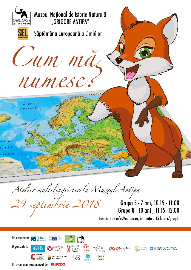 Sâmbătă, 29 septembrie 2018, Muzeul Naţional de Istorie Naturală „Grigore Antipa” îi invită pe micii naturaliști să pornească într-o aventură pe meleagurile Europei, însoțiți de detectivul Vulpes. Copiii vor participa la atelierele lingvistice „Cum mă cheamă?” precum și la o vânătoare de comori, în cadrul evenimentelor dedicate diversității lingvistice din Săptămâna Europeană a Limbilor.