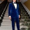 Corey Gamble a purtat un smoking bleumarin personalizat TOMMY HILFIGER din lână și mătase, cu rever de mătase neagră.