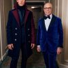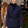 CINE: Tommy Hilfiger a purtat un smoking personalizat de catifea albastră TOMMY HILFIGER x Denis Frison, închidere cu un singur nasture în față, manșete din mătase gros-grain și căptușeală roșie de mătase din garderoba personală, împreună cu o cămașă tuxedo albă și papion negru de mătase. Look-ul a fost realizat din material tip vintage deadstock.