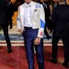Anthony Ramos a purtat un frac alb personalizat TOMMY HILFIGER, reciclat din pânză vintage de vele, o cămașă smoking albă din popelin de bumbac și un papion, combinate cu pantaloni smoking din lână bleumarin. Look-ul a fost realizat folosind pânză de vele reutilizată și materiale tip vintage deadstock