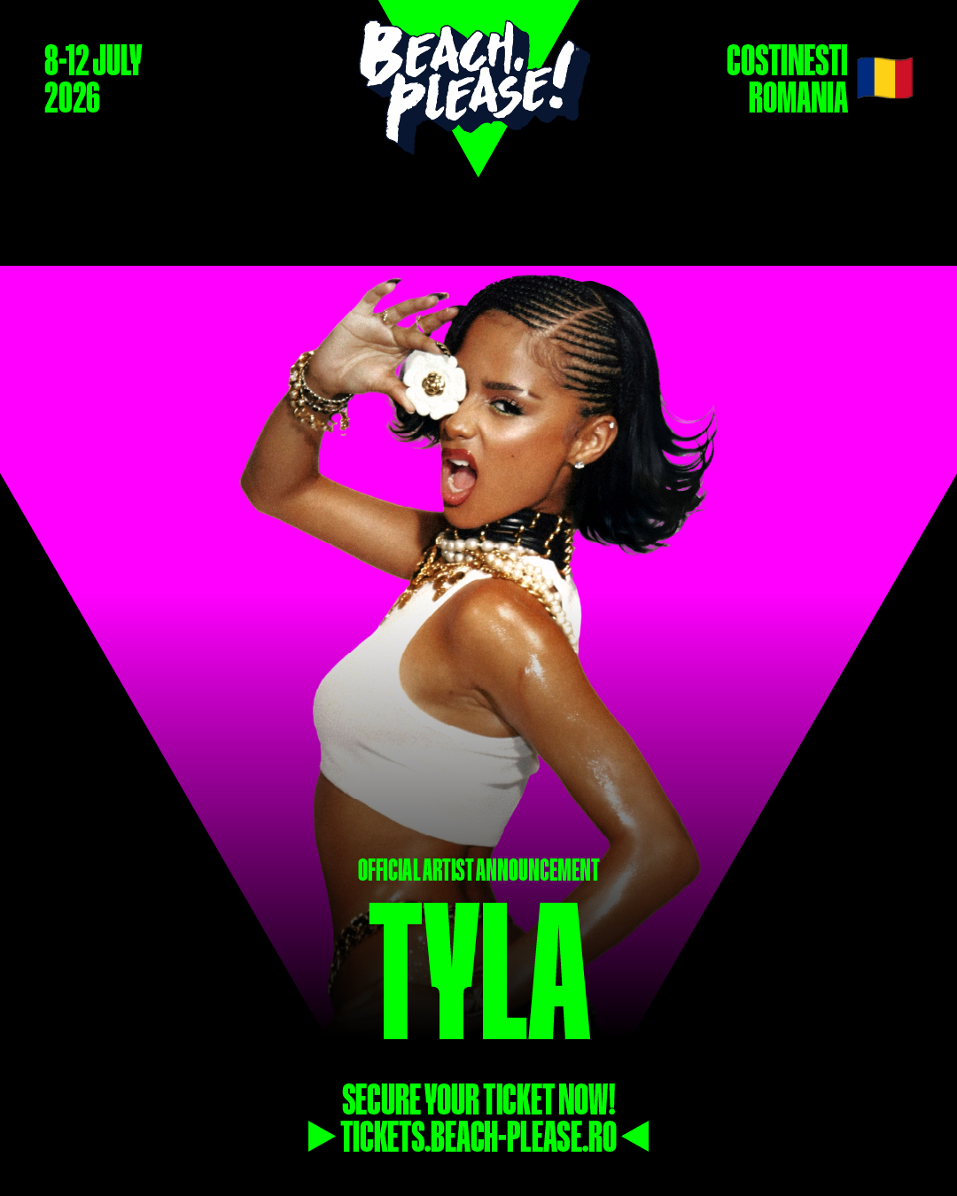 Una dintre cele mai de succes artiste pop ale momentului ajunge în această vară pe litoralul românesc: Tyla, superstarul sud-african care a transformat piesa „Water” într-un hit internațional, vine pentru prima dată în România și urcă pe scena Beach, Please!, cel mai mare festival de hip-hop din lume, care are loc la Nibiru, Costinești.