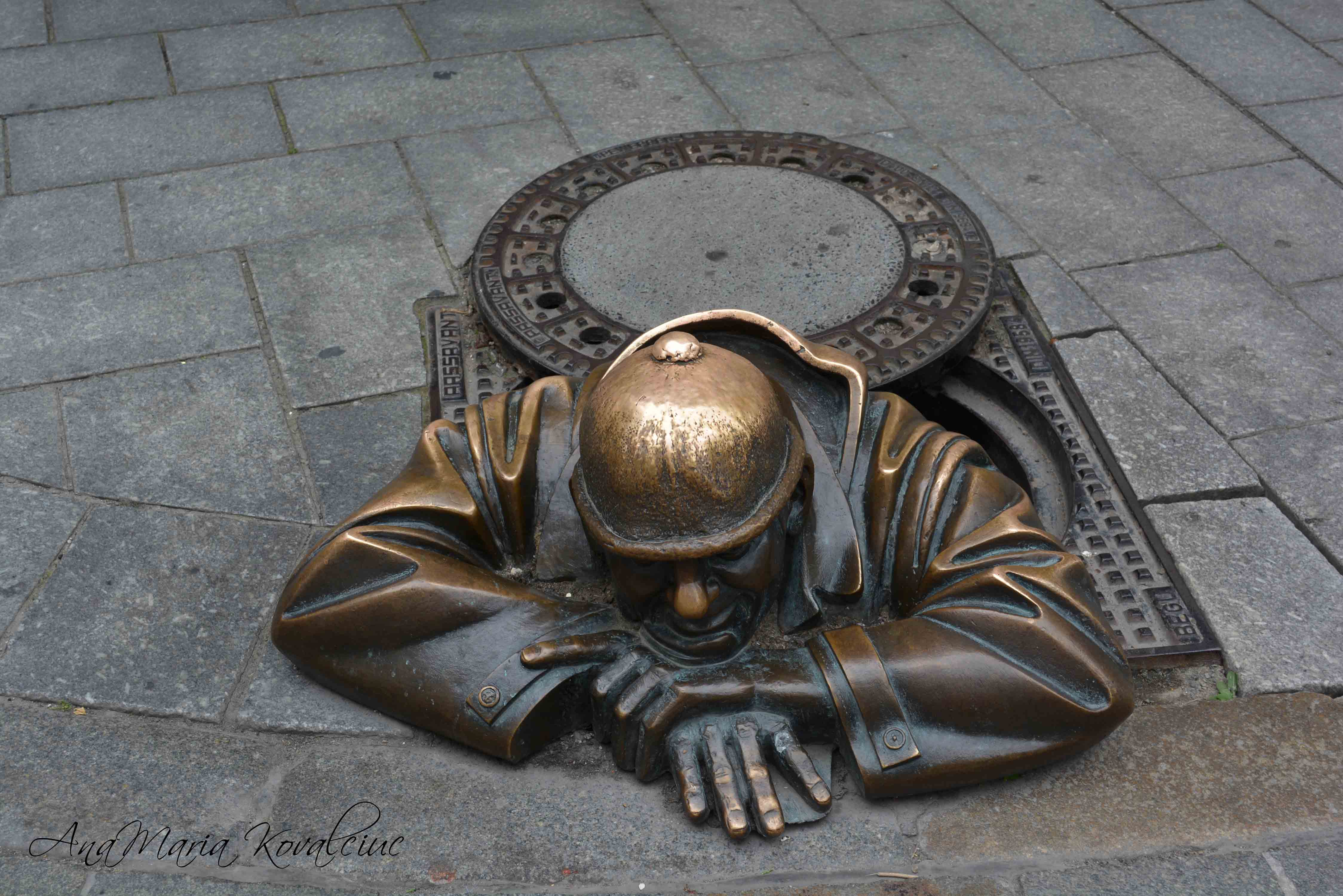 Cea mai fotografiată statuie de bronz din Bratislava este Cumil, un muncitor ce contemplă din canal turiștii. Peste tot prin oraș veți găsi astfel de statui în diferite ipostaze, reprezentând diferite categorii sociale.