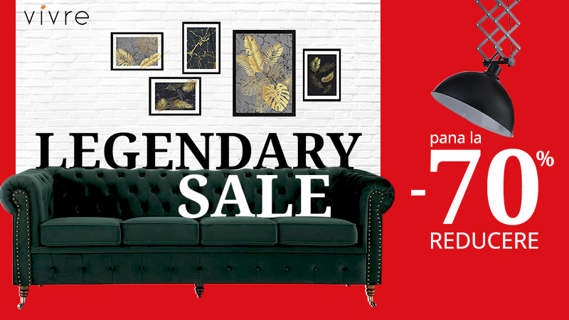 Vivre.ro, principalul retailer online de mobilier și decorațiuni din România și Europa de Est, dă startul reducerilor de toamnă și pune la dispoziția împătimiților de cumpărături mii de produse reduse cu până la 70%. Campania “Legendary Sale” va fi disponibilă pe site începând cu seara de luni, 9 septembrie, și va dura până pe 12 septembrie, inclusiv.