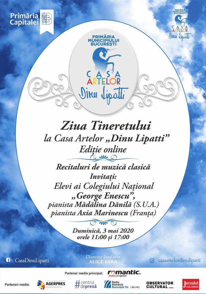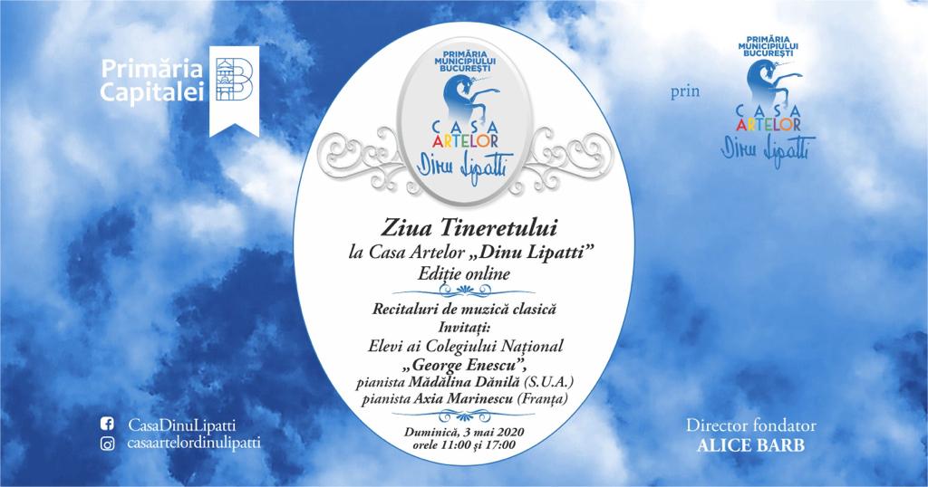 Primăria Municipiului Bucureşti, prin Casa Artelor „Dinu Lipatti”, organizează duminică 3 mai 2020, la orele 11:00 și 17:00, pe rețelele de socializare – Instagram, Facebook și Youtube – Evenimentul „Ziua Tineretului”, Ediție Online.